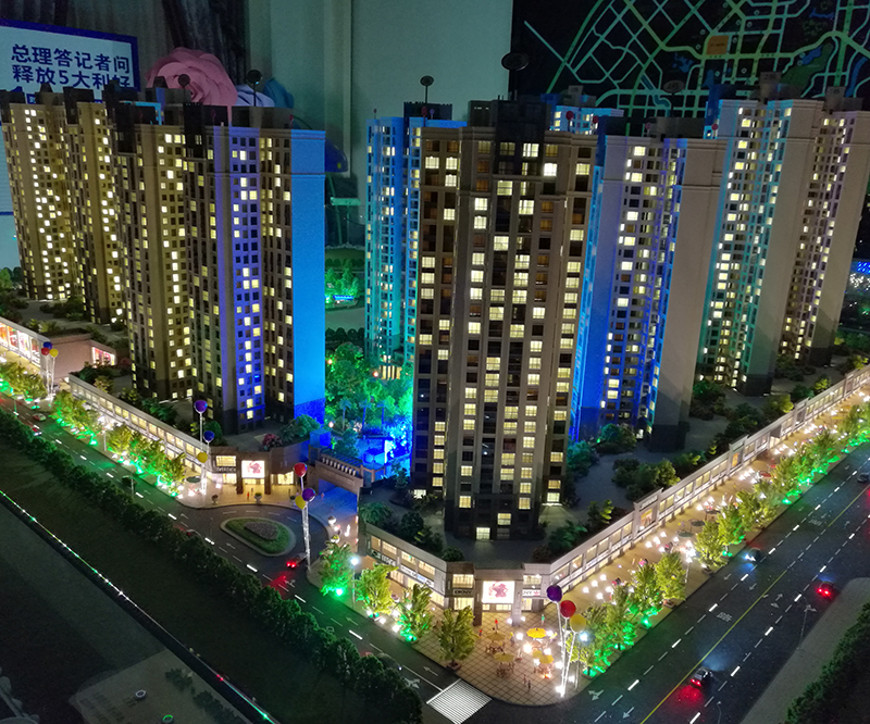 模型采用ABS等材料經(jīng)過CAD畫圖手工拼接、上色等制作工藝完成、并在模型內(nèi)部輔助LED燈光達到客戶展示要求