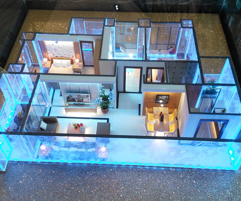 采用透明亞克力制作、內(nèi)部按比例制作家私布局、達到真實仿真效果。